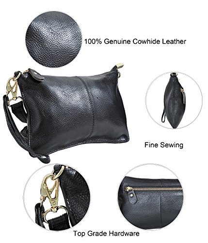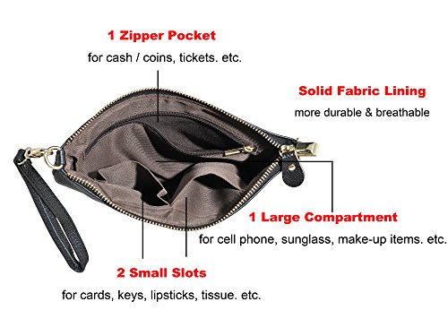 Product Description Beurlike Womens Genuine Leather Smartphone Crossbody Bag, Zipper Clutch Purse Small Compartment Wristle With 2 Strap