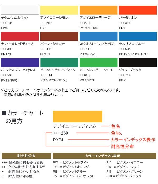 | セット内容 | 20mlチューブ×12色セット 【配色】105、267、270、311、399、411、512、534、568、614、618、714 |
