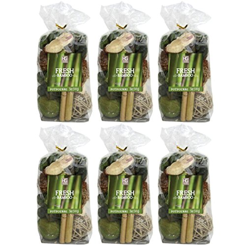 - PRODUCT: Hosley Set of 6 Bags, 5 Oz Each, Total 30 Oz Fresh Bamboo Chunky Potpourri.