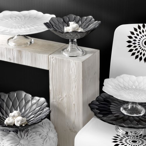 - IVV Glassware Lotus Footed Bowl 9-7/8-Inch Black Decoration