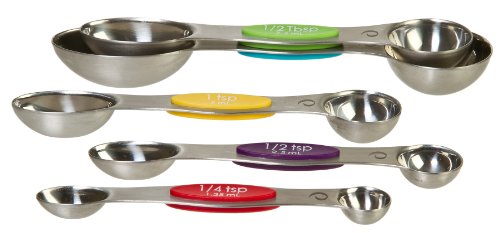 - Double-ended measuring spoons give you two sets in one; snap fit together for storage