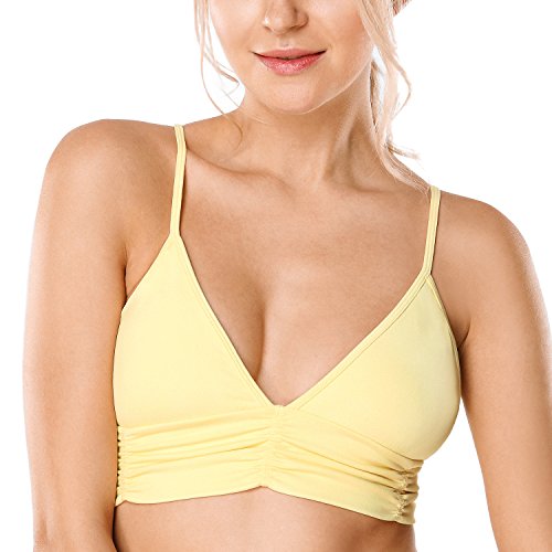 -. Binding : Apparel -. Brand : CRZ YOGA -. Department : womens -. Feature : Elastic closure with cross straps for freedom of movement / XS: bust 32.5 inch; S: bust 34.5 inch; M: bust 36.5 inch; L: bust 38.5 inch; XL: bust 40.5 inch / Plunge style to show your charming curve / Wide shirring stretchy band, four way stretch fabric for all over comfort support / Mesh inner layer cup adds ventilation, all meet your sports or usual need -. ProductGroup : Apparel -. ProductTypeName : BRA -. Title : CRZ YOGA Women's Light Support Comfort Wirefree Plunge Bra Strappy Yoga Sports Bra