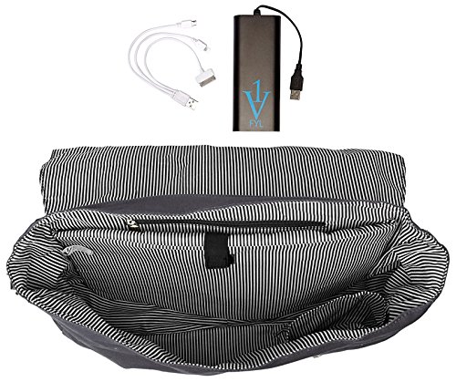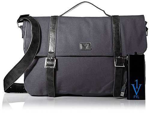-. Title : 1 Voice Men's Dustin Messenger FYL Bag with Built-In Battery Charger, Dark Grey