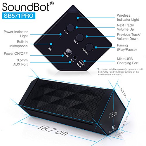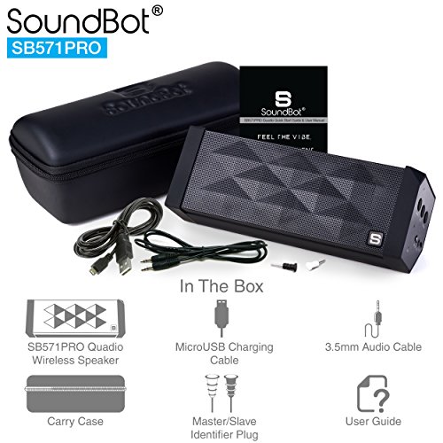 -. Title : SoundBot SB571PRO Bluetooth QUADIO Satellite Portable Wireless Speaker w/ Multi-Unit Multi-Point Connectivity for Up to 4 Master/Slave Unit Simultaneous Surround Sound, HD 5W+5W Acoustic 2x50mm Driver