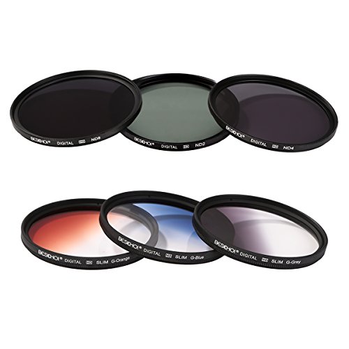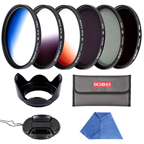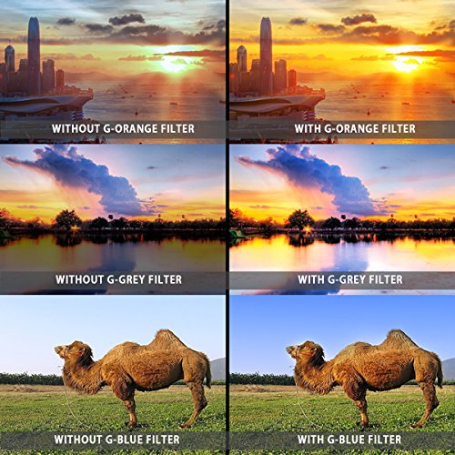 3 * Slim Graduated Color Filter (Blue,Orange,Gray) 3 * ND Filter(ND2 ND4 ND8) 1 * 6-slot Filter Pouch 1 * Lens Cap 1 * Lens Hood 1 * Microfiber Cloth