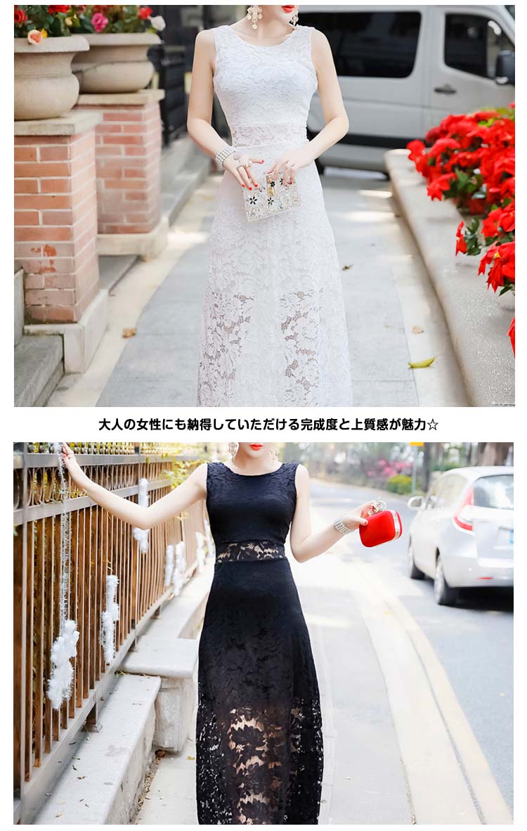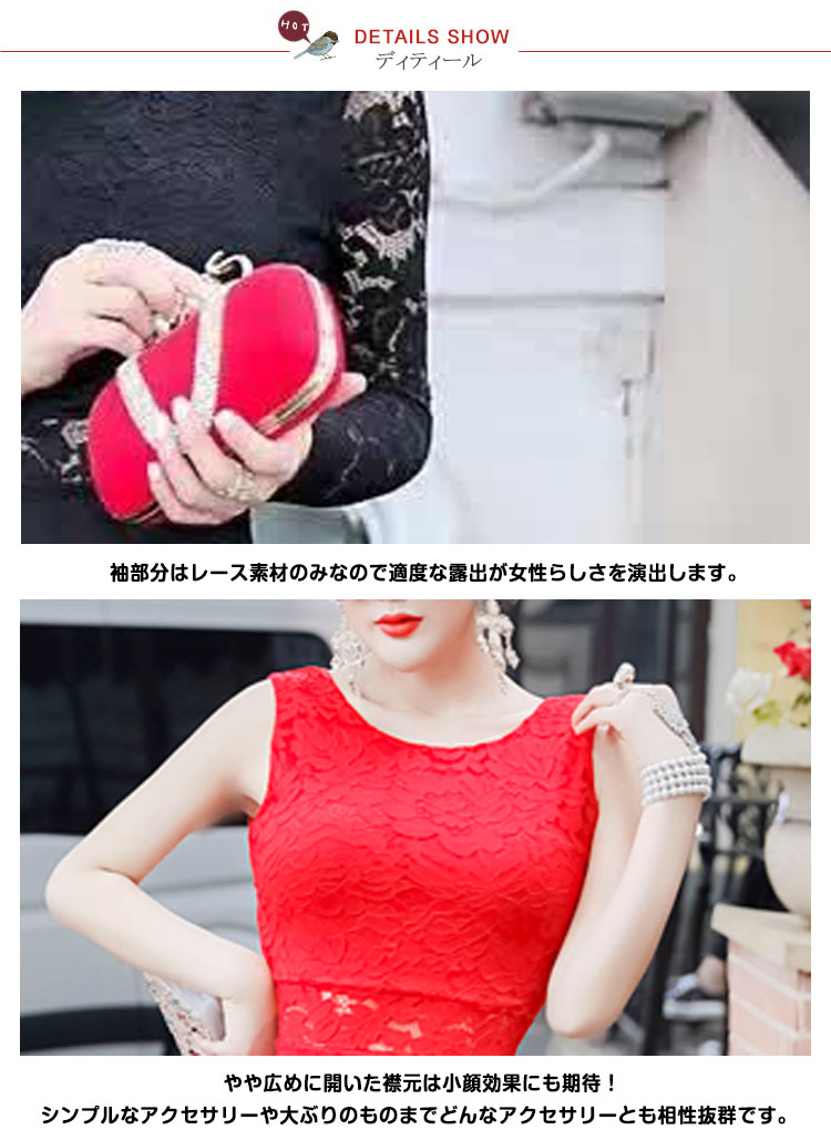 | 総レース仕立てのエレガントなデザインが、上品な大人スタイルを叶えます。高級レースをふんだんに使用した極上の一品。女心をくすぐるレースワンピースは男子ウケも間違いなし!気品を醸し出しながら、レース部分の透け感で女度UP↑着こなし方で色々な女性の顔に。大人の女性にも納得していただける完成度と上質感が魅力☆ | |