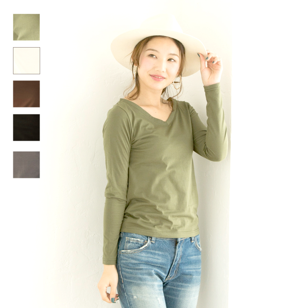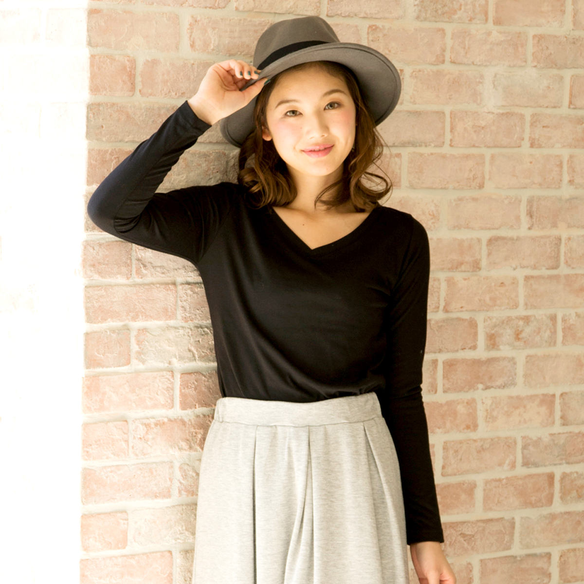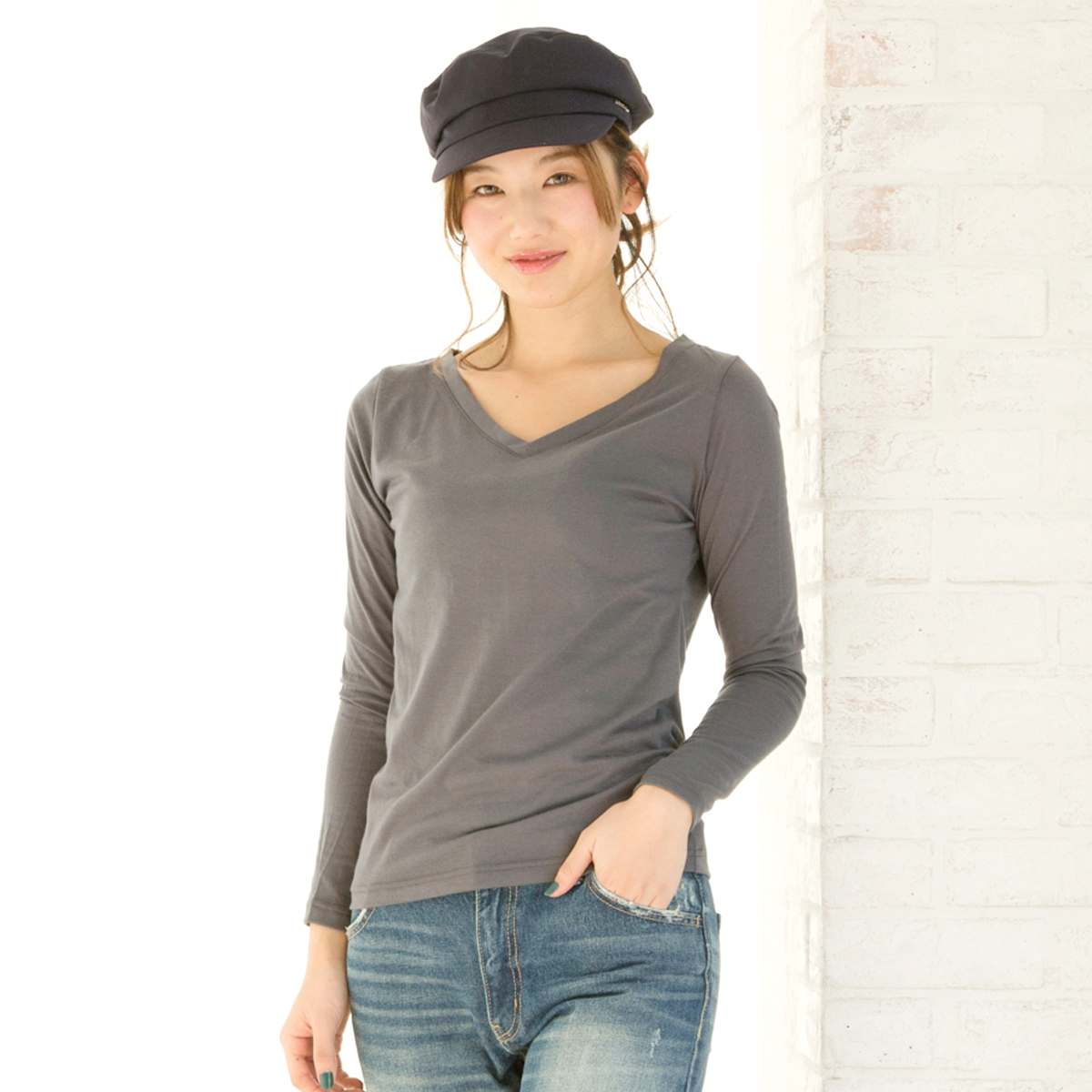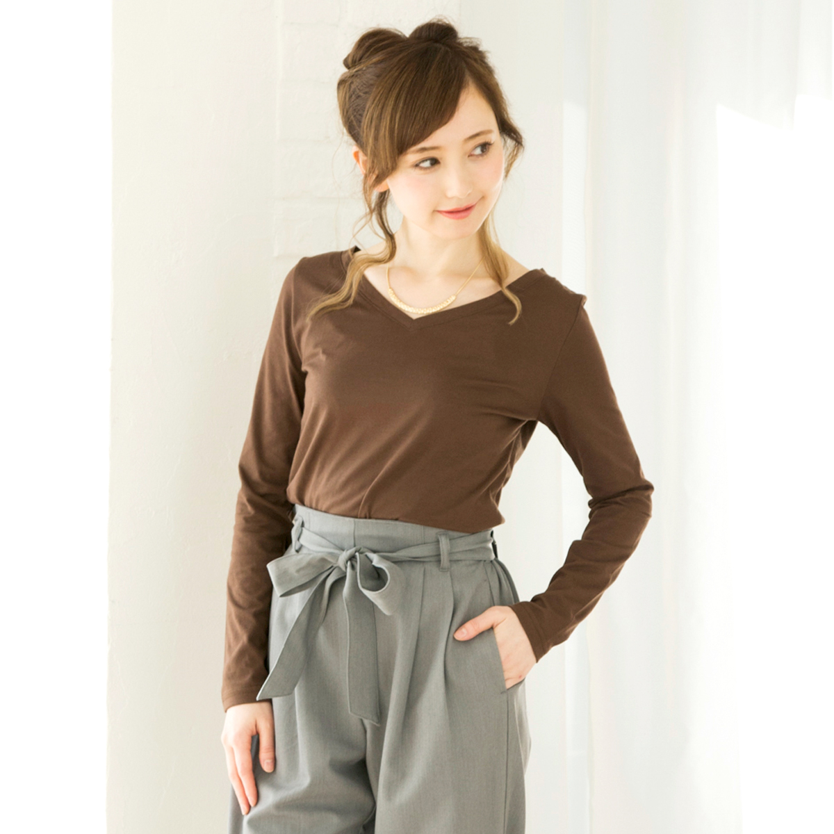 シンプルで着回ししやすい、1枚は持っておきたいVネックのトップスです。さらっとしていて着心地もよいので、インナーとしても活躍できる1枚です。Vネックなのでデコルテ周りをきれいに見せてくれます。