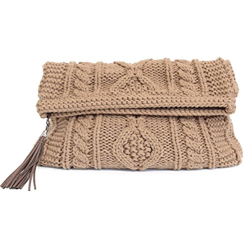 -. Title : ケーブル編み ニットクラッチバッグ ウール混 小物 バッグ BAG 大容量 秋冬 レディース knit ニットバッグ