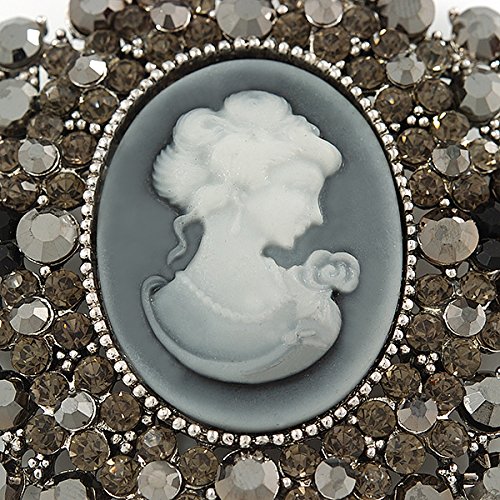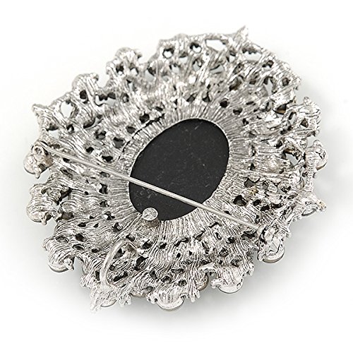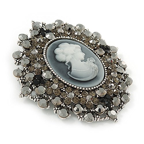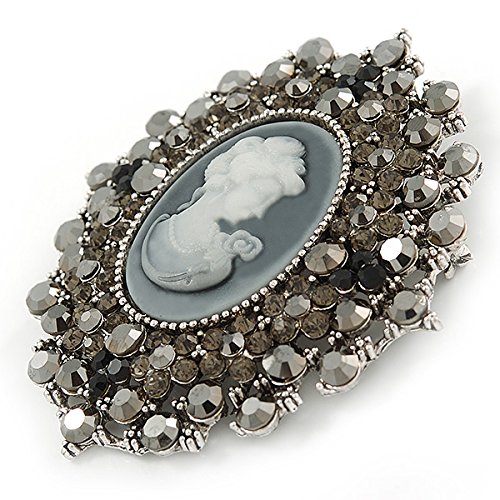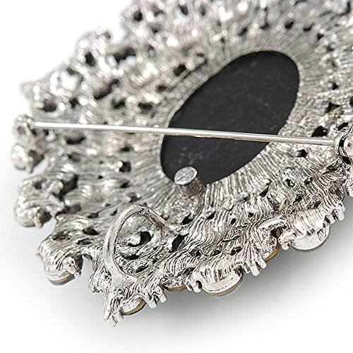 A true depiction of beauty, this Oversized Crystal Grey Cameo Brooch/ Pendant In Silver Tone makes an impression in your jewellery collection. Featuring and oversized oval-shaped cameo brooch, crafted in silver tone metal finish and garnished with grey, hematite and black crystals. The brooch measures about 85mm x 75mm and fastens with a flag pin and revolver. The best part? After you've worked the brooch with your blazers, handbags and scarves, clip its enhancer onto a chain, and enjoy the look as a pendant. Fantastic gift idea - Christmas, birthday, anniversary, mothers day, etc.Feature
