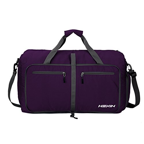 -. Feature : LARGE DUFFEL BAG: 27.6"x11.8"x15.8" with 85 Liter capacity. Easy to Fold up into a flat square with a wrist carry strap around 11.5"x10"x3". Two 13"x12" wide and deep zipper compartments in front. One expanding side pocket perfects to keep dirty clothes separated from clean ones on trips, Also be great to store shoes so they don't come into contact with clothing. Excellent size for All your needs as a Sport bag, Gym bag, Travel bag, Weekend bag, Overnight bag, or Just-in case bag. / DURABLE BUT LIGHTWEGIHT: Honeycomb RipStop nylon fabric that resists wear and tear, well made with uniform seams, tight stitching for longevity. The sturdy zippers have large pulls that make them easy to use, even gloves on handles with a Velcro closure. The bag has a built-in carrying handle and hanging hook,also a removeable strap included for over-the-shoulder carrrying. / RELIABLE TRAVEL ESSENTIAL: Unfold at the airport to avoid excess baggage charges, perfect choice to pack additional purchases, gifts, or souvenirs, convenient to transfer your things from damaged suitcase. This is an airport saviour for any trip - always take one with you on any trip or travel. / GET THE SPACE OF A VERY LARGE SUITCASE WITHOUT THE BULK AND WEIGHT: Lightweight, Foldable and Compact duffle; 85 Litre & weighs 75% less than your empty suitcase (only 1.1 pound). Use at home to store and carry your sports gear or other large items. This Packable Duffle is Designed to work best with HEXIN PACKING CUBES - Add both to your cart for an organized lightweight travel experience. / FASHIONABLY STAND OUT: Remarkable colors easy to find and unlike basic bags, no one takes your bag by mistake. If you are not 100% satisfied with the duffel - Simply Return It For A Full Refund !