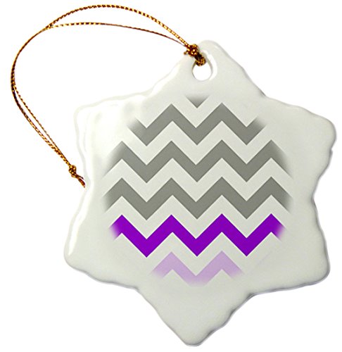3dRose orn_179808_1 Charcoal Grey Chevron with Purple Zig Zag Accent Gray Zigzag Pattern Snowflake Ornament, Porcelain, 3"