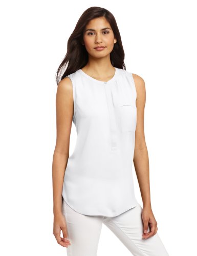 Georgette sleeveless blouse features hidden placket closure and chest pocket in front with pleating detail in the backFeature