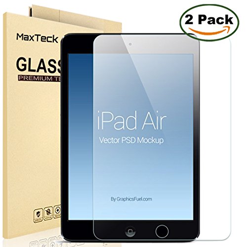 [2 Pack] iPad Air / iPad Air 2 / Pro 9.7" Screen Protector, MaxTeck 0.26mm 9H Tempered Glass Screen Protector for Apple iPad Air (iPad 5)/ iPad Air 2 (iPad 6) / iPad Pro - Lifetime Warranty