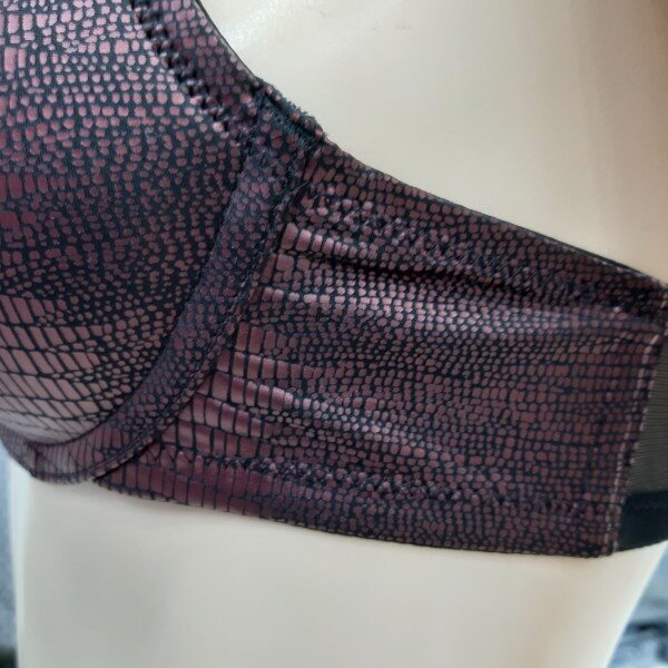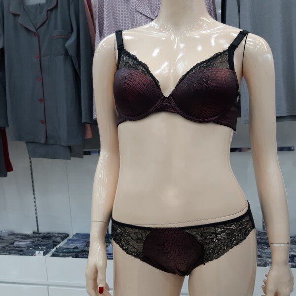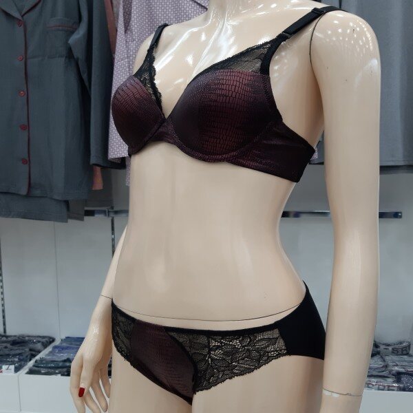 입체감있는 뱀피무늬와 화사한 레이스를 조합해 디자인한 패션브라/팬티세트입니다