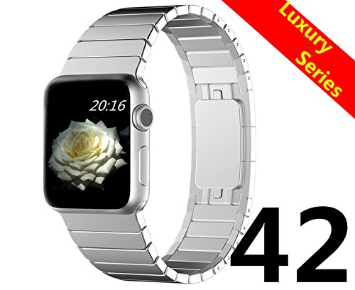 - Title : Apple Watch Band, Top4cus® Hi-Q Stainless Steel Replacement Smart Watch Band Link Bracelet with Double Button Folding Clasp for 42mm Apple Watch All Models. (42mm Silver)