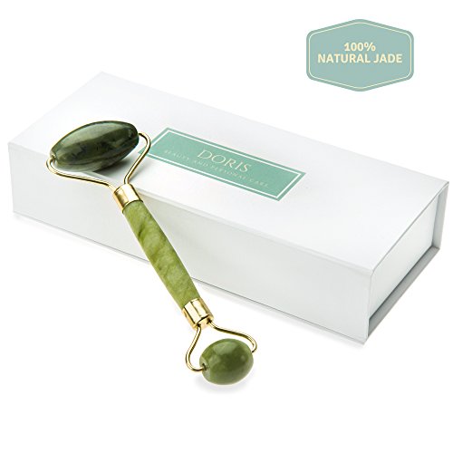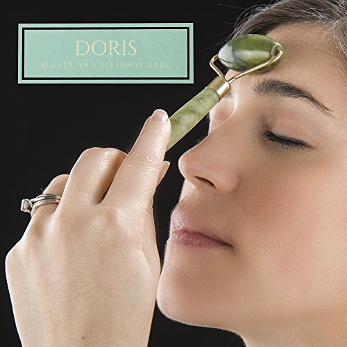 DORIS Jade Roller Massager| Carefully selected Premium Natural Jade, Hand-Polished, Help reduce wrinkle, brighten skin, two size roller for Face, Neck & Eyes |...