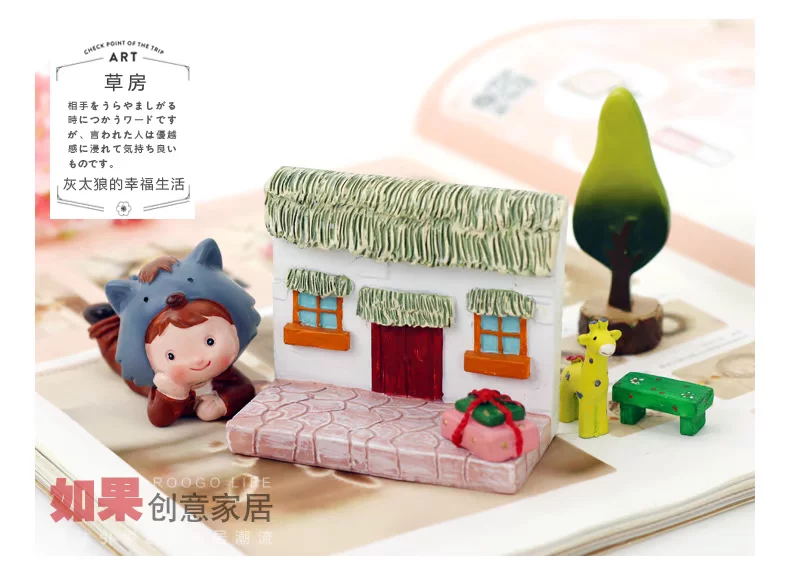 If the idea of European resin ornaments hanging thatched cottage home life scene photograph photography props desk ornaments