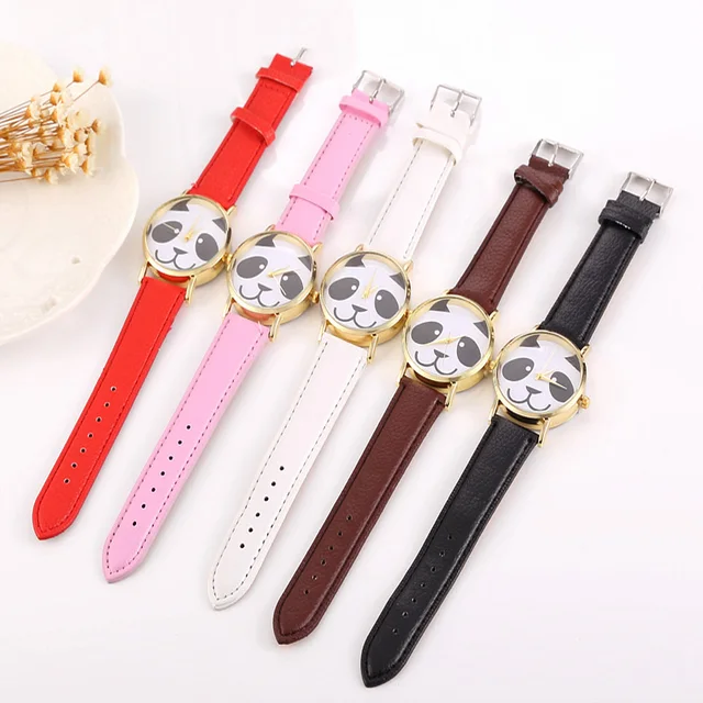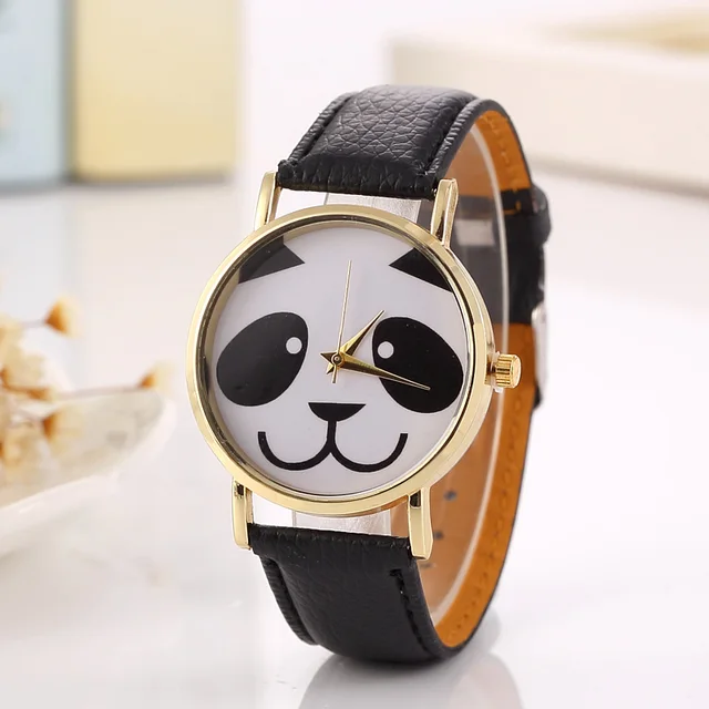 | [해외] Cindiry 인기있는 귀여운 팬더 패턴 여성 석영 시계 우아한 숙녀 손목 시계 학생 가죽 밴드 팔찌 시계 선물 |