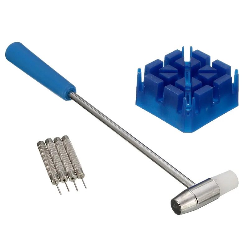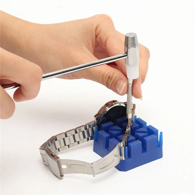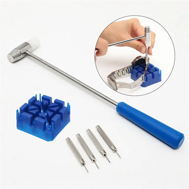 | [해외]좋은 품질 6 개 시계 수리 밴드 스트랩 링크 홀더 + 망치 + 펀치 핀 리무버 수리 도구 키트 세트 시계 제조 도구 |