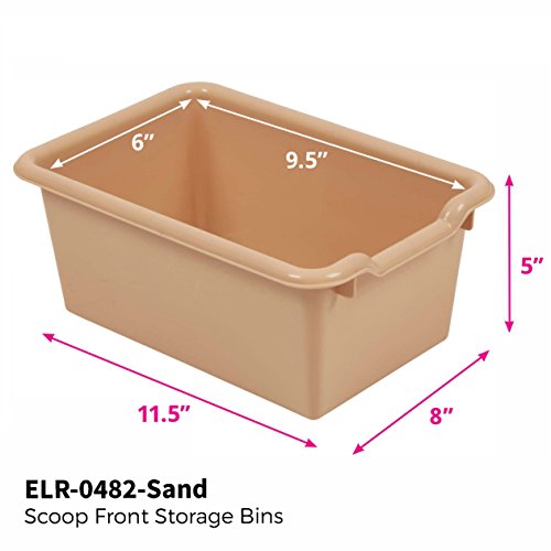 Get organized. These durable, versatile and sturdy scoop-front, plastic tote bins are the perfect addition to most ECR4Kids storage units that are 12" deep or more. Assembled Weight: 0.53 lbs. Assembled Dimensions: 11.5" x 8" x 5"