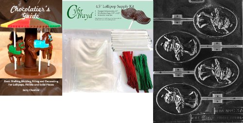 Cybrtrayd Oval Angel Lolly Chocolate Mold with Chocolatier's Bundle of 50 Lollipop Sticks, 50 Cello Bags, 25 Red and 25 Green Twist Ties and Chocolatier's Guide