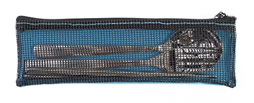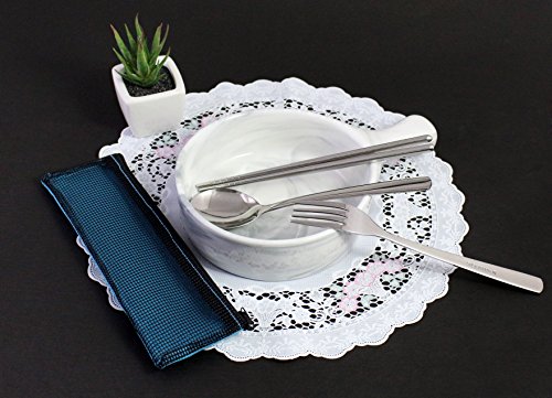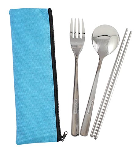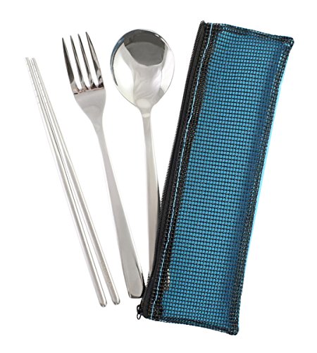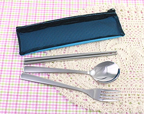 Modern Elegant Travel Stainless Steel Chopsticks Fork Spoon Flatware Tableware with Zipped Case - Blue