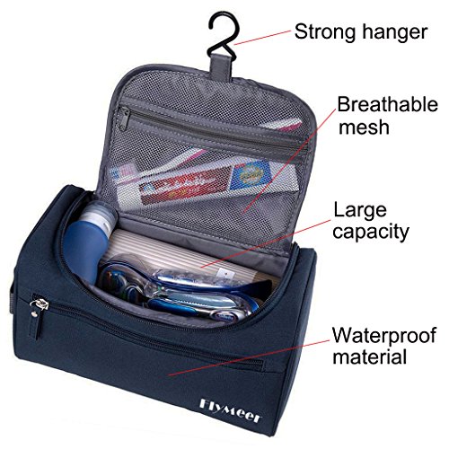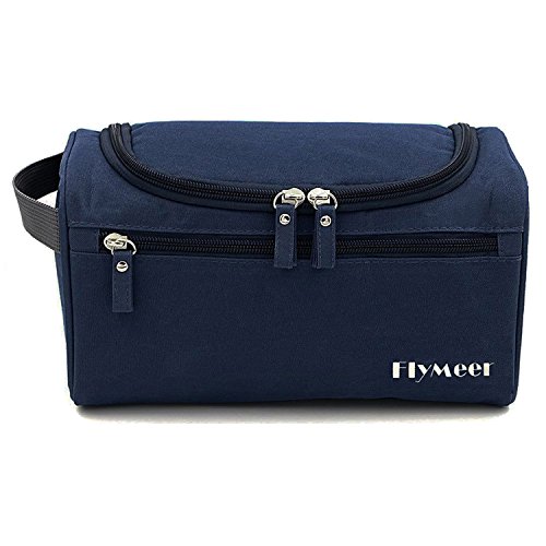 Flymeer Hanging Travel Toiletry Bag Large Capacity Waterproof Travel Case for Men & Women, Organizer for Accessories, Shampoo, Cosmetic, Personal Items, Healthcare Bag with Handle (Dark Blue)