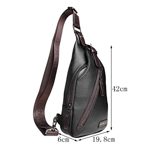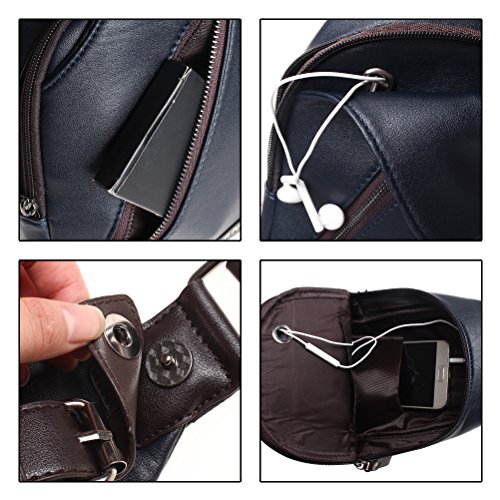 -. Feature : Material: The bag made of high quality PU leather / Size: The bag measurement size is 19.8*6*42 cm/7.8*2.3*16.5 inch (L*W*H) / Structure: A main compartment with a cell phone pocket, a document pocket, and a small bag outside / Style: With adjustable shoulder strap satisfied your necessary, a headphone jack for easy listening to songs on the main bag / Application: Fits for outdoor activities, such as hiking,travelling,cycling, camping, etc