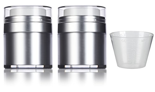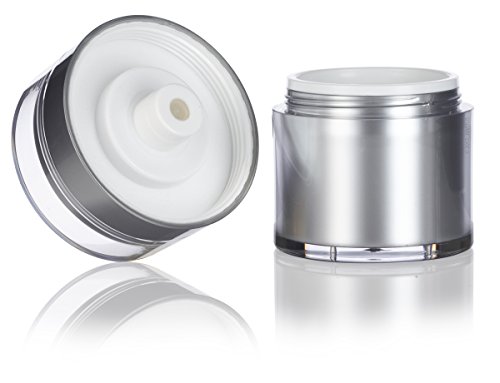 Platinum Silver Airless Refillable Jar 1 oz / 30 ml (2 pack) for Home or Travel, keeps out bacteria and air changing oxidation from your skin care products - durable, leak proof, and shatterproof