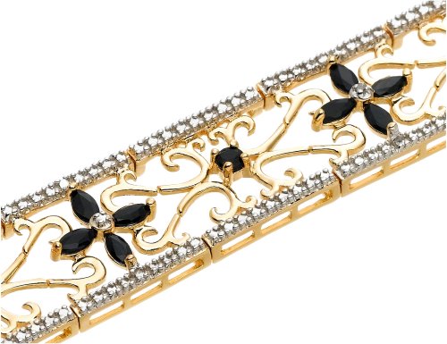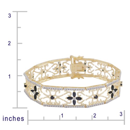- Title : Yellow Gold Plated Sterling Silver Sapphire and Diamond Accent Flower Bracelet, 7.5"