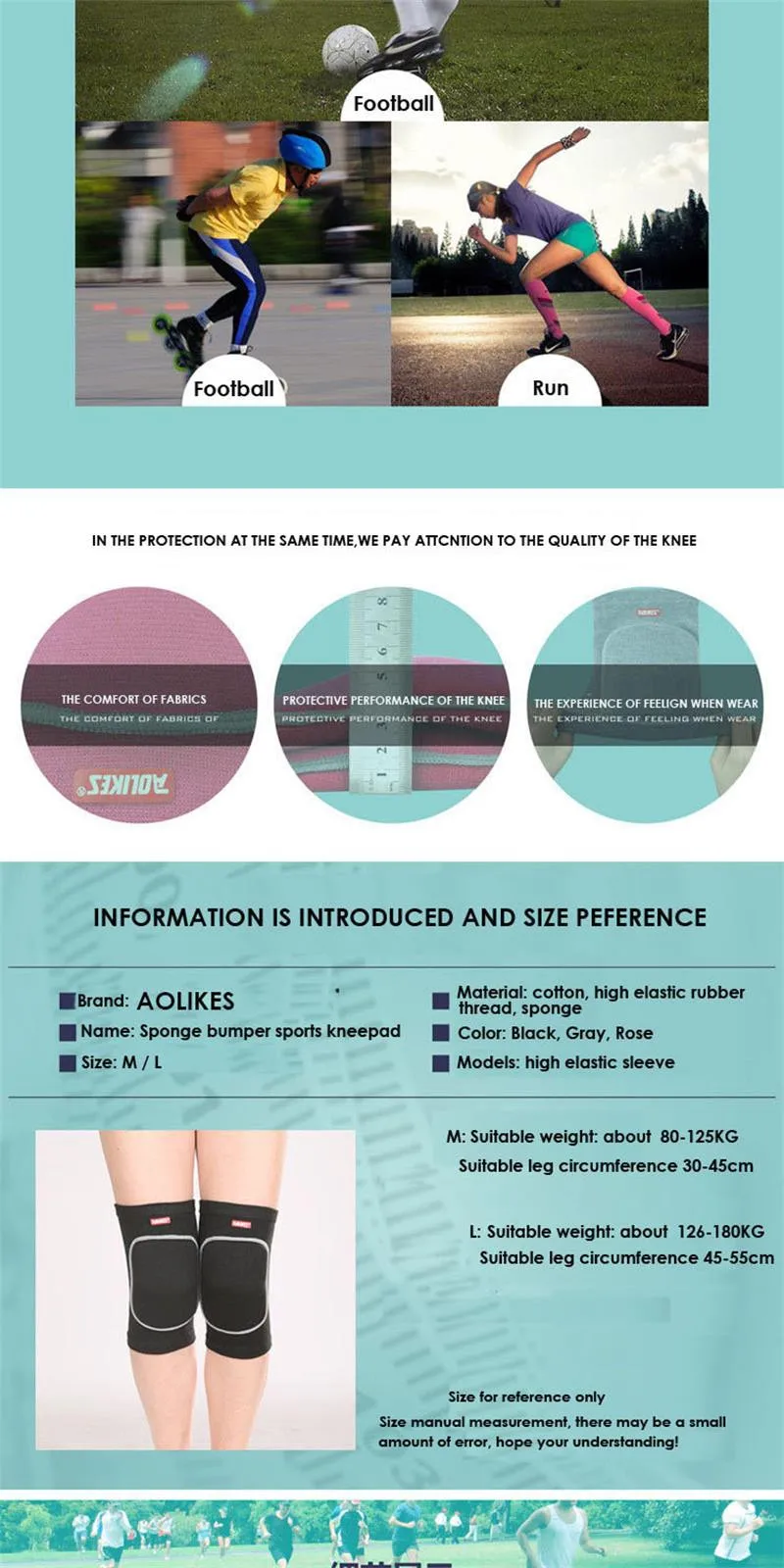 M-- Top circumference 30-45cm,suggest weight:40-60kg people L-- Top circumference 45-55cm,suggest weight:60-90kg people |