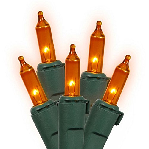 Vickerman Orange Mini Christmas Lights with Green Wire, Set of 100