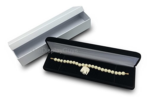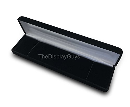 The Display Guys Deluxe Velvet Metal Gift Jewelry Box Presentation Display Metal Hinge, Comes With White Two Piece Packer (8x2x1 1/8 Inches For earring, Black)