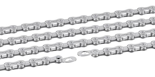 Studio : Connex Publisher : Connex Binding : Misc. Product Description 11-speed drivetrains demand a well-constructed chain for optimal, quiet performance and the Connex 11SO model is certainly a superb choice. The 11SO is perfect for any manufacturer's 11-speed drivetrains and its durable, steel construction means it's also ideal for road or mountain bikes. The optimized geometry of the plates enables extremely rapid and virtually silent gear changes on all derailleur systems. The newly developed peripheral chamfering of the outer plate ensures optimum gear-changing performance. And to withstand the high forces of cross gearing under load, Connex developed a completely innovative process for radial riveting. This radial riveting of the pins, in combination with a special pin coating, guarantees top performance and long wear, even for narrow width 11-speed chains. Additionally, this chain includes the renowned Connex Link which provides a simple, tool-free means to connect or disconnect the chain. For all 11-speed drivetrain systems, road or mountain Steel construction for strength and durability High performance plate geometry ensures quick, accurate, and silent gear changes 118 links Connex Link included -- the perfect tool-free connector Weight: 270 grams Made in Germany 0