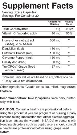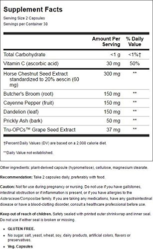 -. Binding : Grocery -. Brand : Nature's Way -. EAN : 0033674792704 -. Feature : The product temperature is Ambient Room Temperature -. IsAdultProduct : 0 -. Label : Natures Way -. LegalDisclaimer : * These statements have not been evaluated by the Food and Drug Administration. This product is not intended to diagnose, treat, cure or prevent any disease. ** Always refer to the manufacturer's label on the product for description, recommended dose and precautions. -. Manufacturer : Natures Way -. Model : 69637 -. MPN : 69637 -. NumberOfItems : 1 -. PackageQuantity : 1 -. PartNumber : 69637 -. ProductGroup : Health and Beauty -. ProductTypeName : HEALTH_PERSONAL_CARE -. PublicationDate : 2018-04-30 -. Publisher : Natures Way -. ReleaseDate : 2005-05-01 -. Size : 60 Capsules -. Studio : Natures Way -. Title : Nature's Way Leg Veins with Tru-OPCs, Capsules 60ea -. UPC : 033674792704