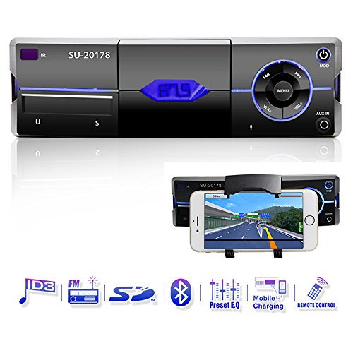 Car Stereo With Phone Holder, Single Din In Dash Car Radio Audio Receiver Supports Bluetooth/18FM/MP3/USB/MMC/SD/Remote Control by Xshop