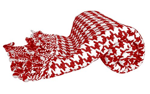 Peach Couture Home Collection Luxurious Cashmere Wool Houndstooth Knitted Throw Blanket, Red