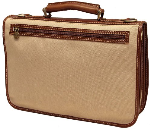 -. Title : Floto Roma Messenger Bag in Canvas with Brown Leather Trim
