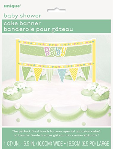 - Gender-neutral pastel design makes this a sweet and simple way to top off a cake for a baby shower or baby sprinkle