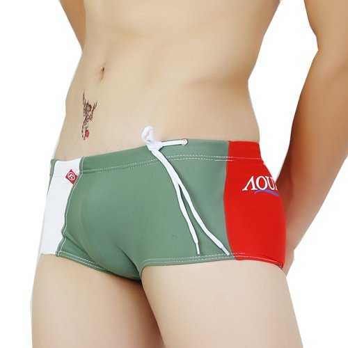 -. Title : Low waist men's swim trunks men's Boxer trunks ,M, green and Red
