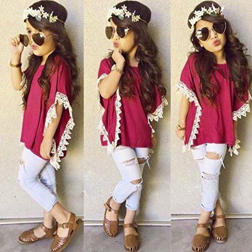-. Binding : Apparel -. Brand : SUNBOY -. Department : baby-girls -. Feature : Material:Cotton blend / As picture color / For the season: Summer .SP.R.Ing,Autumn / 1 Package:1 T-shirt+pant / Note:We are Asia size,please refer to our size chart below,you may need to order a bigger size. -. ProductGroup : Apparel -. ProductTypeName : PANTS -. Title : Little Girls Summer Outfits Set Lace T-Shirt and Denim Jeans