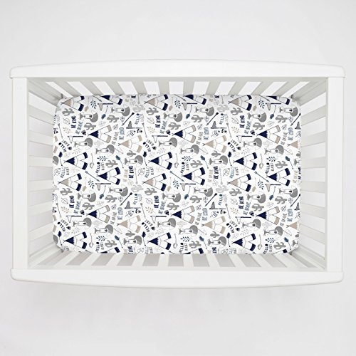 -. Title : Carousel Designs Navy Brave Fox Mini Crib Sheet
