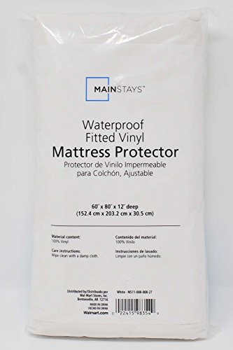 -. Title : Mainstays Waterproof Fitted Vinyl Queen Mattress Protector, White