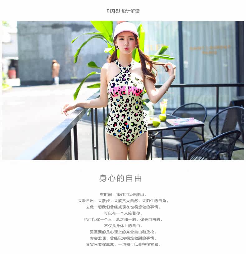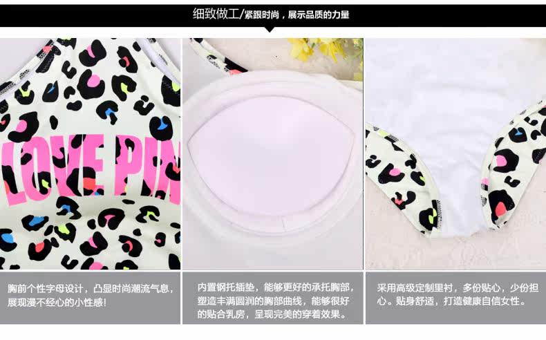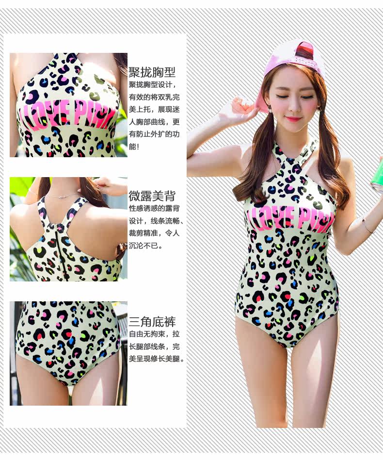 新款性感豹纹三角连体泳衣女修身显瘦钢托小胸聚拢大胸