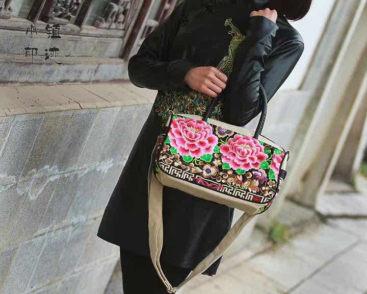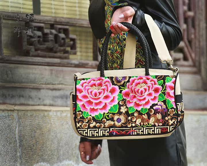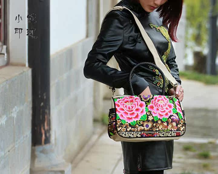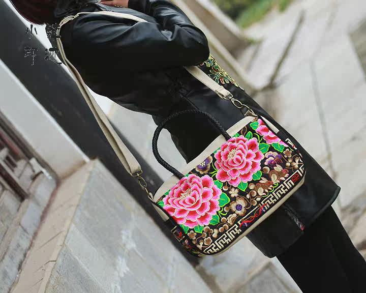 Peony flowers embroidered diagonal package