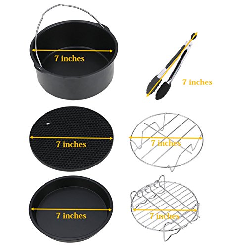 PERFECT FITS MORE BRANDS:These universal air fryer accessories perfect fit Gowise, Phillips, Cozyna and More Brand. Each accessory perfect fit all standard air fryer (3.7QT)to XL air fryers(5.8QT).The size of the accessories is 7 inches.
