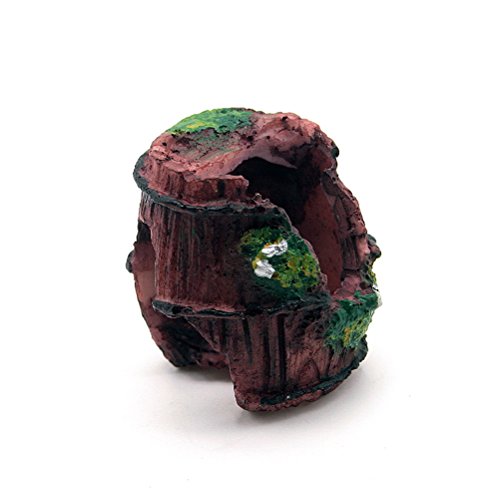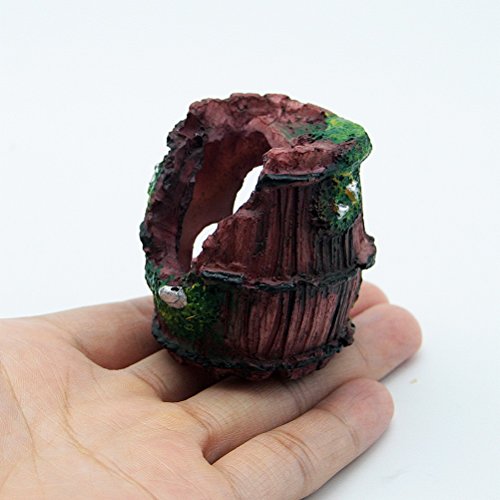 -. Title : Dimart Green&Dark Red Aquarium Fish Tank Resin Broken Barrel Cave Ornament Landscaping Decoration Fish Tank