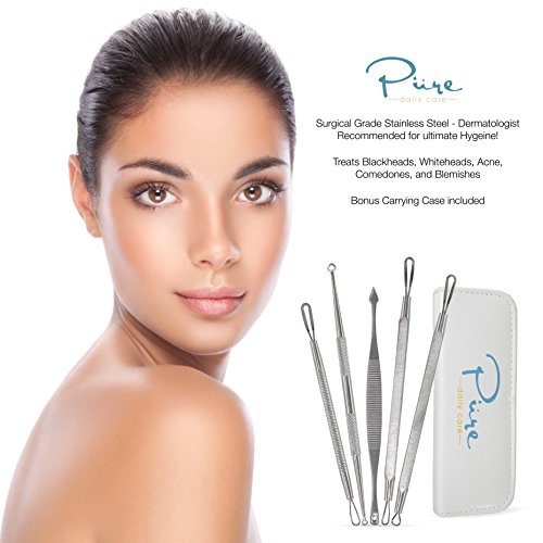 DERMATOLOGIST RECOMMENDED SURGICAL GRADE STAINLESS STEEL- The Pure Daily Care Blackhead & Blemish kit is made of surgical grade stainless steel which is autoclaved for ultimate hygiene. Most blackhead kits are made of cheaper regular steel, we use the highest grade of steel possible which is known for its renowned antibacterial properties and rustproof capability.