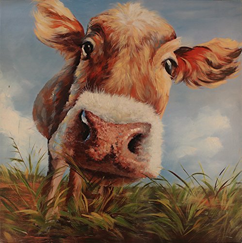 ArtMaison.ca Gallery Wrapped 40-Inch by 40-Inch Hand Painted Acrylic on Canvas, Tina O., Cow in Field
