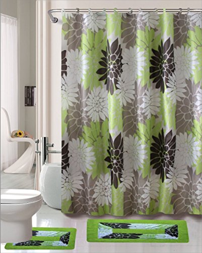 - 15 piece set includes: 1 shower curtain (70x70); 1 Contour rug (18x18); 1 rectangle rug (18x30); 12 shower hooks (standard size)